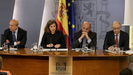 GRA481. MADRID, 30/04/2015.- La vicepresidenta del Gobierno, Soraya Sáenz de Santamaría (2i), junto a los ministros de Educación y Cultura, José Ignacio Wert (i); Economía, Luis de Guindos (2d); y Hacienda, Cristóbal Montoro (d), durante la rueda de prensa tras la reunión semanal del Consejo de Ministros. EFE/Ballesteros
